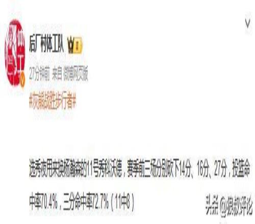 而他赛季前三场分别砍下14分、16分、27分,投篮命中率70.4%,三分命中率72.7%(11中8) 。