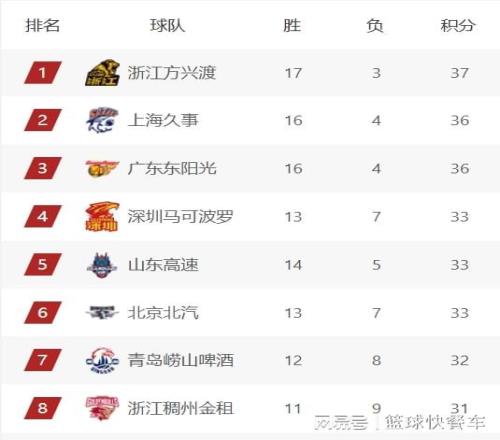 附:CBA积分榜最新排名