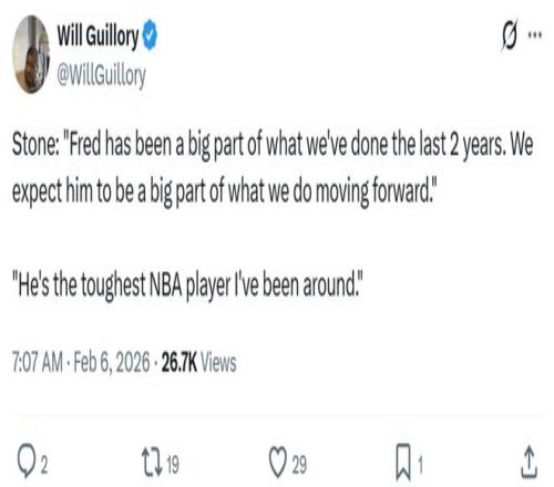 斯通也在发布会中确认这一点:“他(范乔丹)在过去两年为球队做出重要贡献,我们仍相信他未来还会是球队的支柱,他也是我接触过最坚韧的球员。”