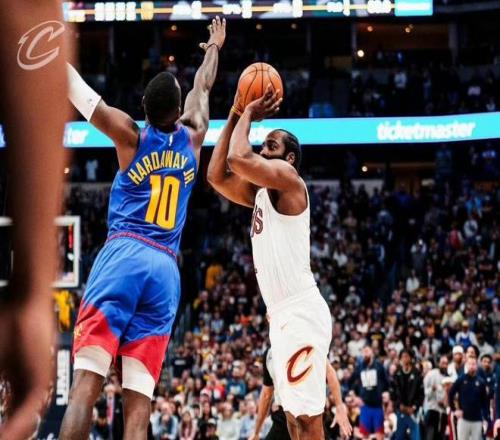NBA常规赛,掘金坐镇主场迎击骑士。本场比赛之前,掘金34胜19负排名西部第3,本赛季的掘金,也被普遍认为雷霆之后的第二夺冠人选,他们进攻端火力十足,场均120.4的得分,123.8的进攻效率,39.6%的三分命中率,皆排在联盟第一,约基奇和穆雷双核心也威慑力拉满,有点23年的感觉了。另一边的骑士队,本场比赛之前,32胜21负排名东部第4,迎来哈登后的骑士,上限大幅提升,米切尔,哈登,阿伦的三巨头组合也不容小觑,上一场哈登加盟骑士的首秀,他打得就相当惊艳,末节关键时刻爆发救主。