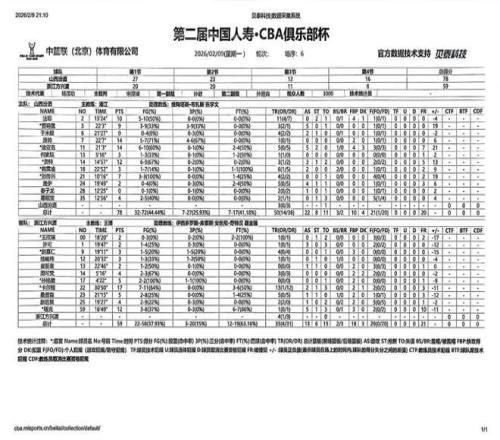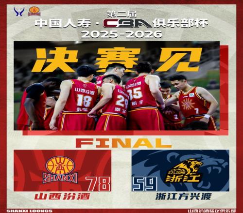 北京时间2026年2月9日19:30,第二届中国人寿·CBA俱乐部杯半决赛继续进行,山西汾酒在内蒙古体育馆,迎战浙江方兴渡。本场比赛,山西队准备充分,篮板球拼抢积极,进攻也比较耐心,最终顺利取胜,但全队需摆正心态。正如潘江指导赛后所说,大家一定要保持清醒,对手大部分主力缺阵,需要继续认真总结,准备接下来的决赛。最终全场比赛结束,山西汾酒78:59战胜浙江方兴渡。