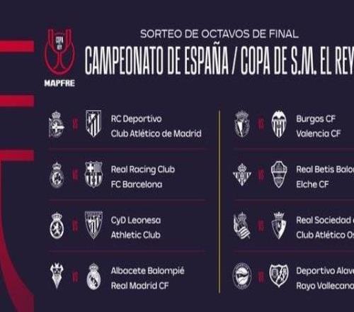 国王杯16强对阵:巴萨客战桑坦德竞技,皇马客战阿尔瓦塞特 -